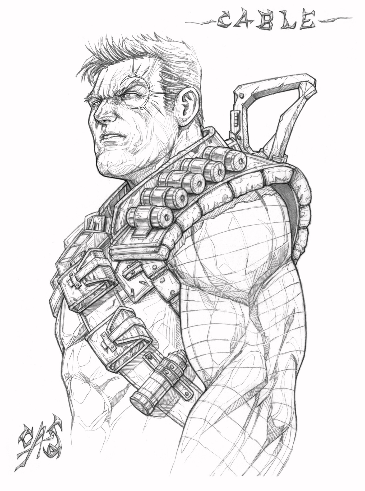 Artstation A Traditional Pencil Drawing Of The Marvel Comics Character Cable That Was Later Colored In Photoshop